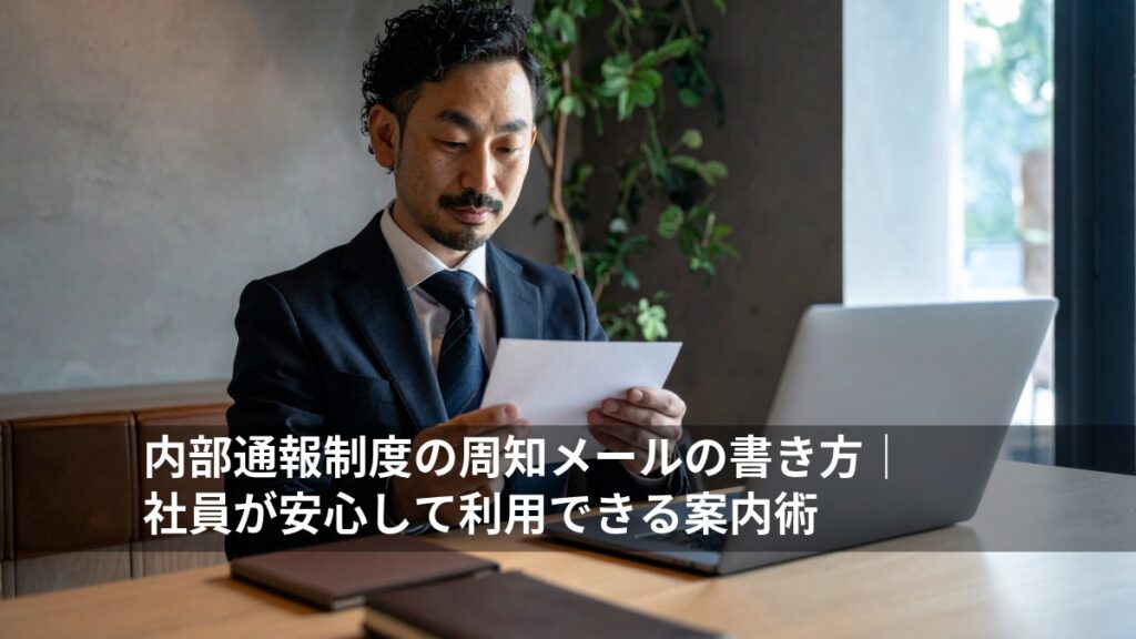 「コンプライアンス強化のために内部通報制度を作ったけれど、社員にどう伝えれば利用してもらえるだろう」「通報者が不利益を被ると誤解されないか心配」と、案内メールの作成に慎重になっている担当者の方は多いのではないでしょうか。