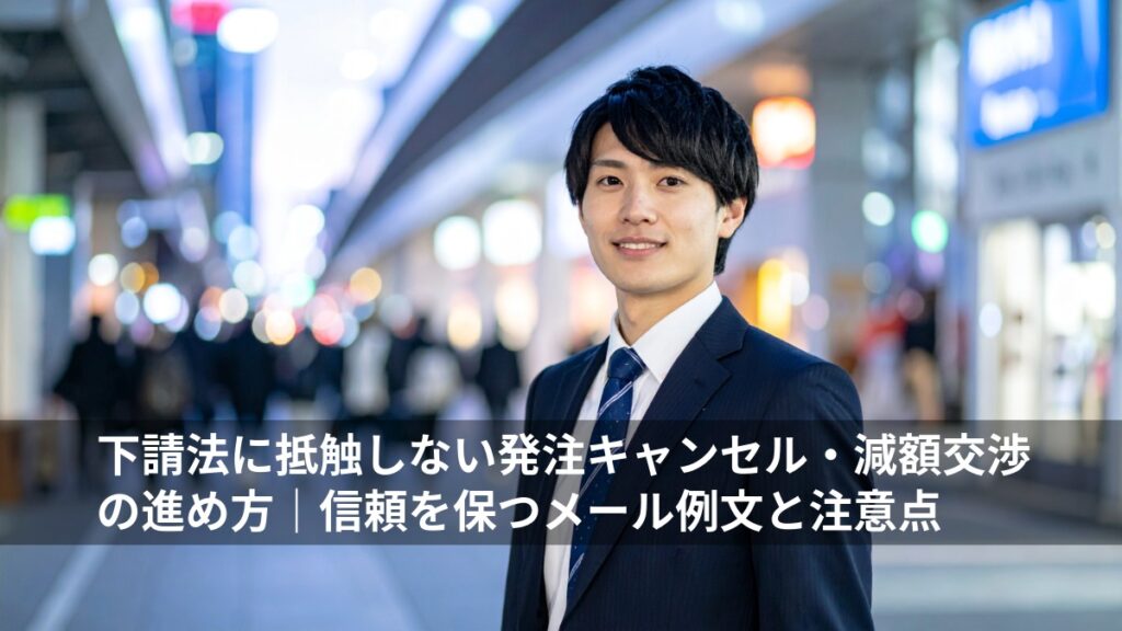 発注後のキャンセルや減額は、ビジネスにおいて最も神経を使う場面の一つです。特に下請法が適用される取引の場合、一歩間違えれば法的なトラブルに発展するだけでなく、長年築き上げた信頼関係を一瞬で失いかねません。