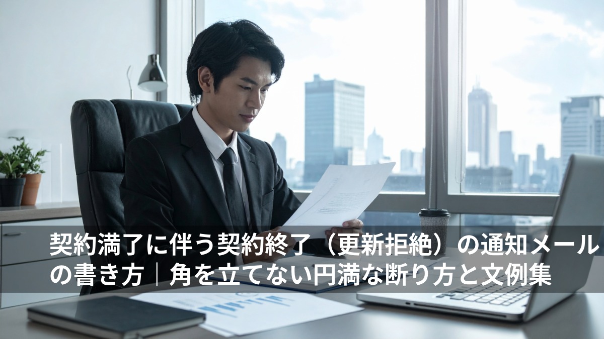 この記事では、相手への配慮を示しつつ、ビジネスライクかつ誠実に契約終了の旨を伝えるための基本マナーと、そのまま使えるシチュエーション別のメール文例をご紹介します。