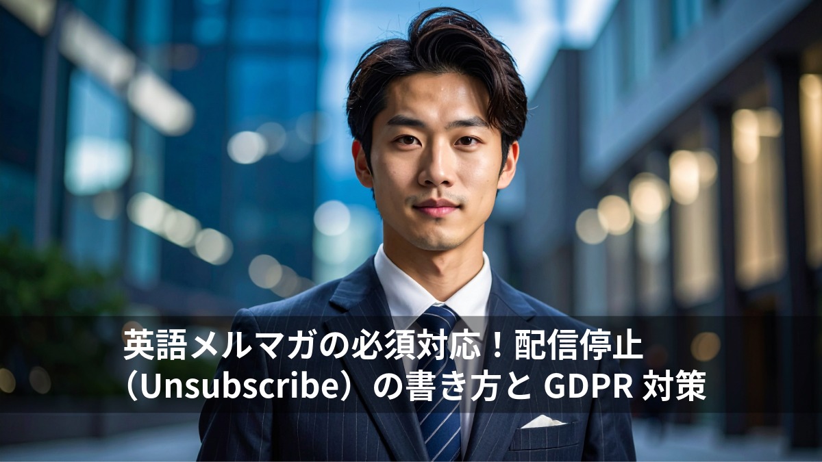 英語でビジネスメールを大量配信する場合、アメリカの「CAN-SPAM法」や欧州の「GDPR」といった法律を遵守する必要があります。これらの法律では、受信者がいつでも簡単に、かつ無料で配信を停止できる権利を保証しなければならないと定められています。